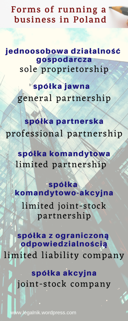 Na poniższej grafice znajdziecie tłumaczenia dla polskich form prowadzenia działalności gospodarczej: