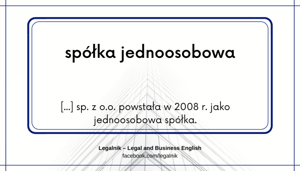 Tak jak widzimy na powyższej fiszce (wszystkie fiszki znajdziecie tutaj) – w przypadku tłumaczenia firmy oznaczenie formy prawnej (w tym przypadku sp. z o.o.) pozostawiamy bez zmian. Jakie jest tego uzasadnienie? Firma obejmuje także oznaczenie prawne, a więc sp. z o.o. to element firmy. W przypadku spółki z ograniczoną odpowiedzialnością wynika to z art. 160 KSH: